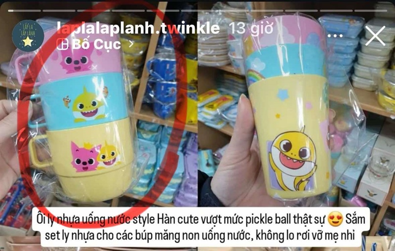 Aizoum Set 3 ly nhựa có quai Baby Shark