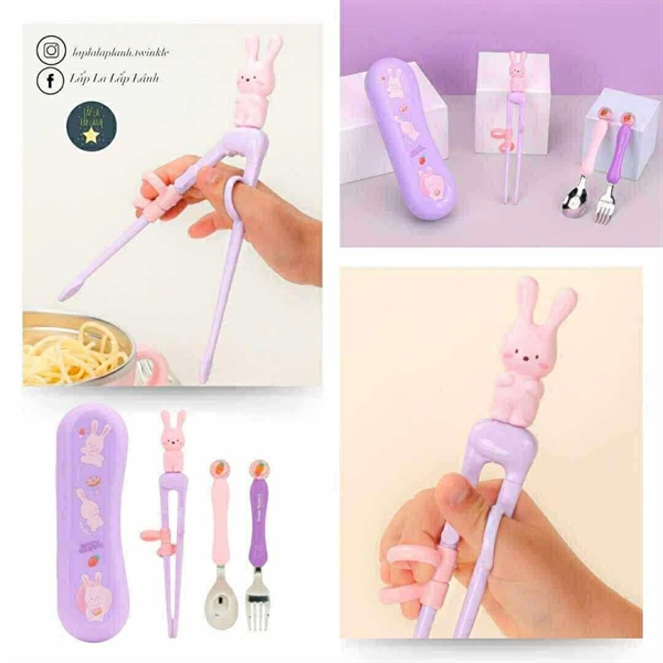 Lilfant Set muỗng nĩa đũa kèm hộp Thỏ hồng