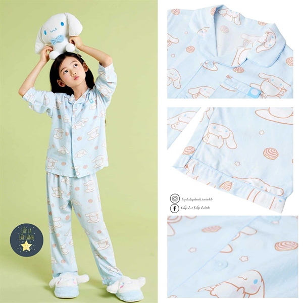 Spaokids Set pyjama Cinnamoroll dài tay cổ V size 130